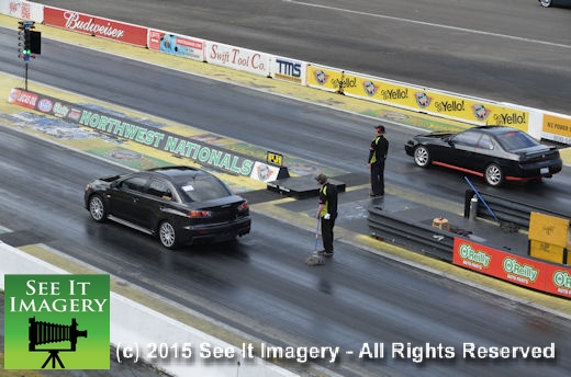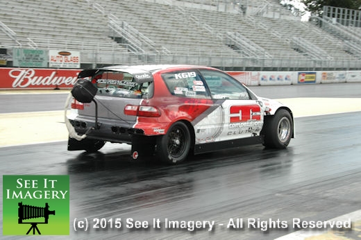 Testing went on thru the day on the strip with the lapping cars getting a lot of track time with the in-between round time for the Honda’s. With the drag testing finished up Mother Nature started a misty sprinkle, perfect timing, as the drag strip was done.